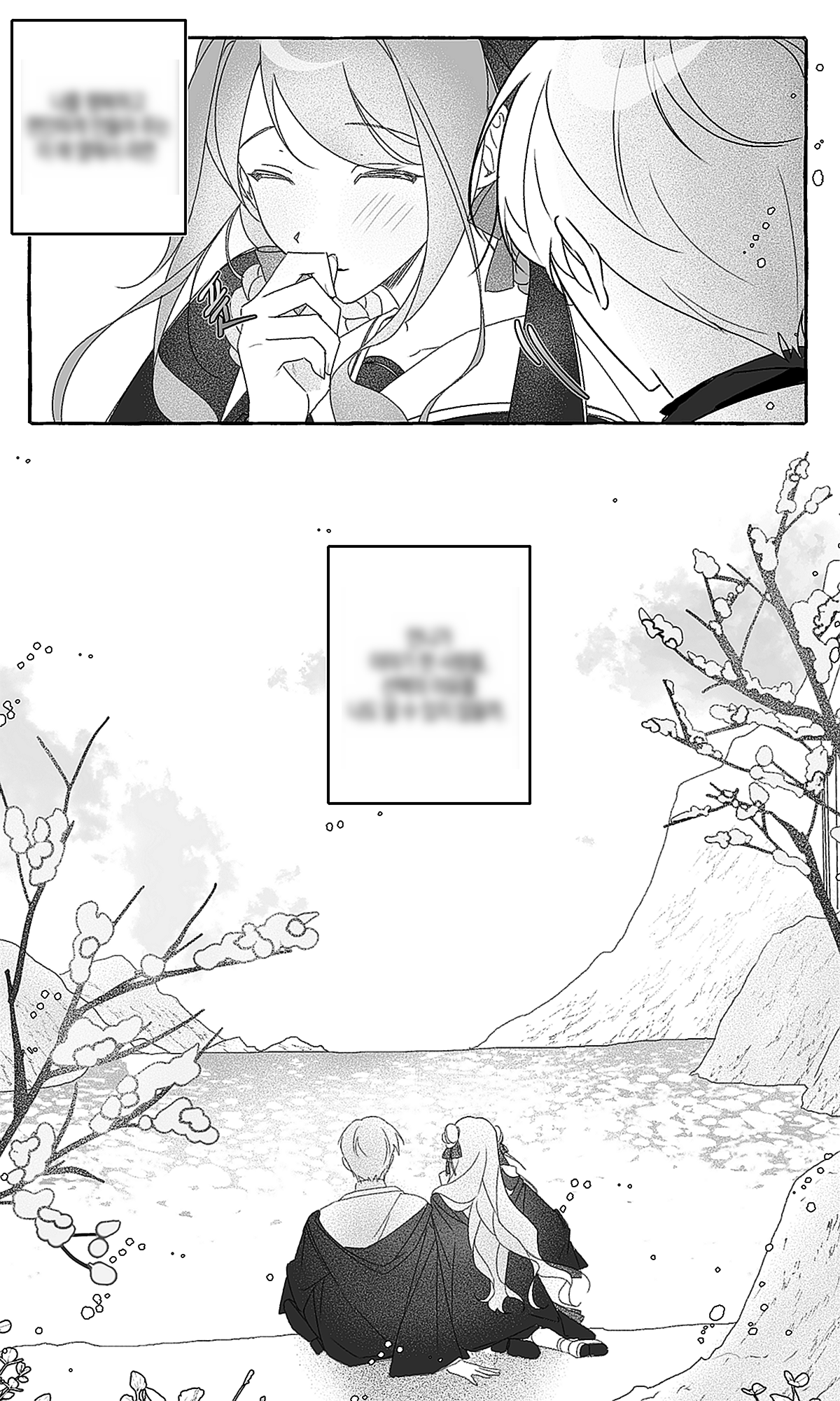 3컷 (가장 중요한 컷입니다. 화사하고 벚꽃잎이 날리는 연출이 있었으면 좋겠어요. A캐릭터가 볼을 붉히며 러브레터를 내밉니다. / "널 좋아해!")
